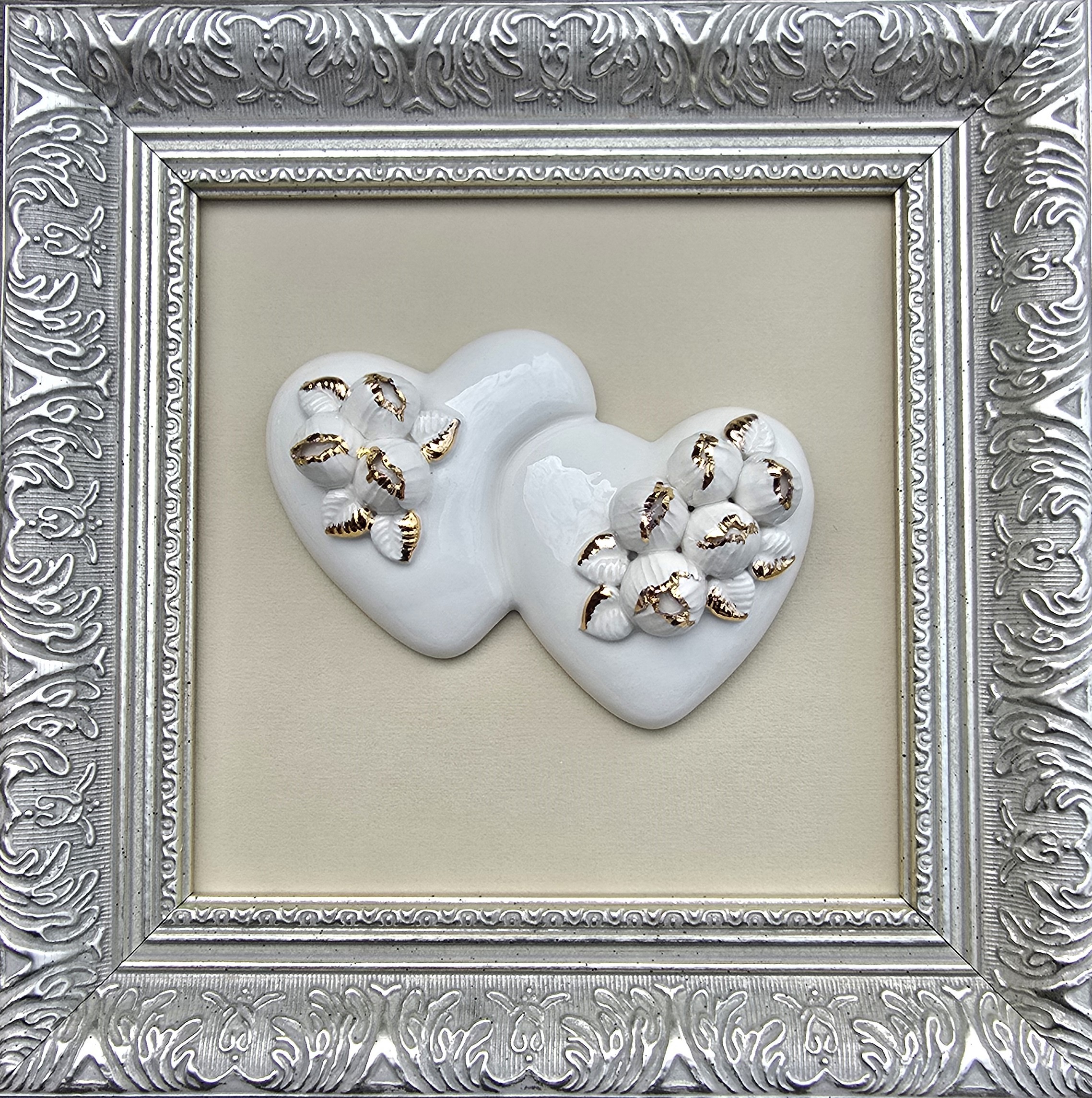 Baltas molis, glazūra, auksas.